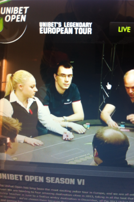 Сейчас в игре осталось 38 человек. ИТМ 36 человек. У меня ~ 215к. Был часовой перерыв на ужин. Через 15 минут продолжим. 3к/6к блайнды будут. www.unibetopen.com (http://unibetopen.com) тут можно следить. Есть текстовая трансляция и ТВ стол.