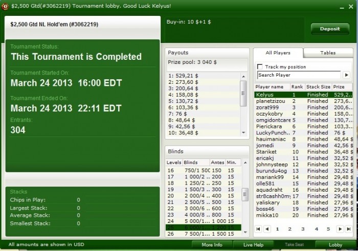 На Трою пока что на саты потратил порядка 150 баксов, вчера только удалось выиграть билет за 275 евро на воскресный финальный сат.