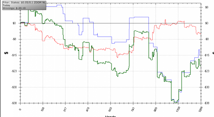 Теперь, так сказать, о деле. Депнула сегодня 25 БИ на нл10, в планах допропорядочно играть по БР и все такое, чтобы на дистанции хотя бы 30К отследить свой винрейт на этом лимите. Конечно, это будет трудно, потому что, во-первых, я избалована зумом, а с применением своих познаний в чтении статов придется идти за обычные столы. Впрочем, думаю, днем можно играть в зуме, а вечером тогда уже за обычными, хотя это будет мешать набивать дистанцию... Не знаю даже. Какие у вас мысли? Во-вторых, меня все же будет тянуть на нл25. Надеюсь, дисциплина пребудет со мной.