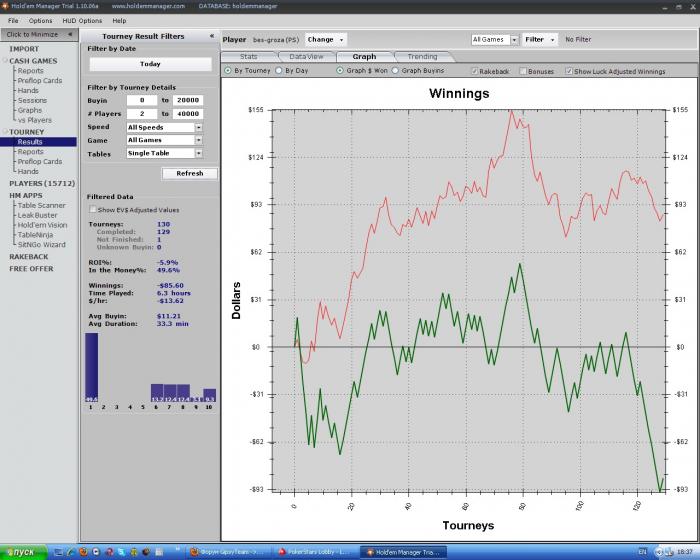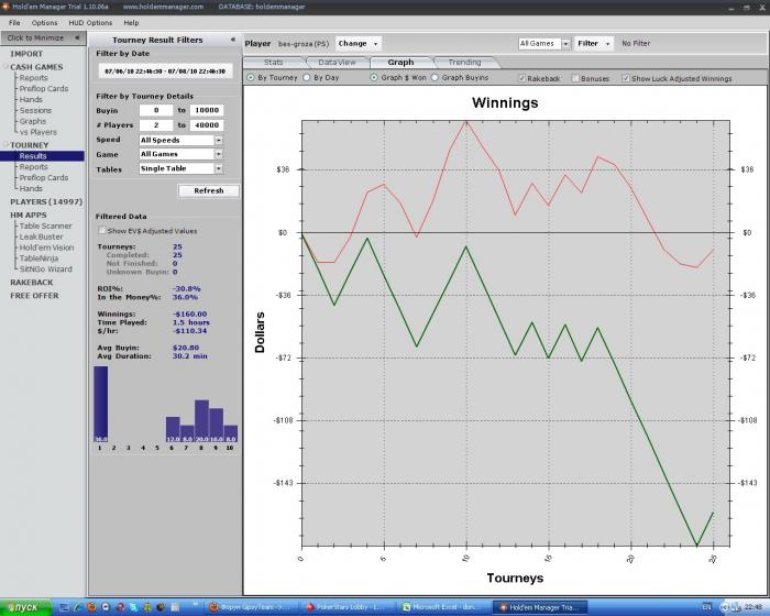 17 побед из 40 игр, ITM 43%, ROI -18%