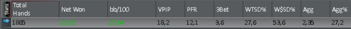 Против рега с трибетом 1,8% на 180 рук предфиналка Poker Stars, $0.91 Buy-in (150/300 blinds, 25 ante) No Limit Hold'em Tournament, 5 Players Poker Tools Powered By Holdem Manager - The Ultimate Poker Software Suite.