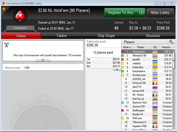 Кто-то скажет что я балбес и верю во всякую лабуду, но мир не идеален ))) В пятницу я не играю, т.к. вечно-минусовый день, а вот сегодня пришел, запустил ноут и начал грузить туры. В течении минут 20-ти минус 5 турниров на кулерах, переездах....(я не жалуюсь если че) сижу ахуевший полез в календарь и сцуко! это пятницаотменил все реги и осталось 6 столов. Ну и хрень я пишу В общем ломаем стереотипы и боремся со страхами нанылся вовремя