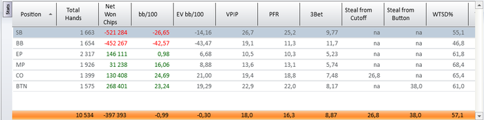 провел пару самых нудных часов связанных с похером - разбор Ковырял пуш-фолд. Ничего сверх эпичного и плохого вроде не нашел, кулера и прочую хрень в счет не берем, т.к. это стандарт. Быть может пару раздач,где опп полный мудак фиш и его можно было разобрать по-аккуратнее (имею виду в ХА) раздач, типа вот этой, где где чудо пушит 50бб 100-й раз на рейз, хотя и колл тут совсем не ошибка