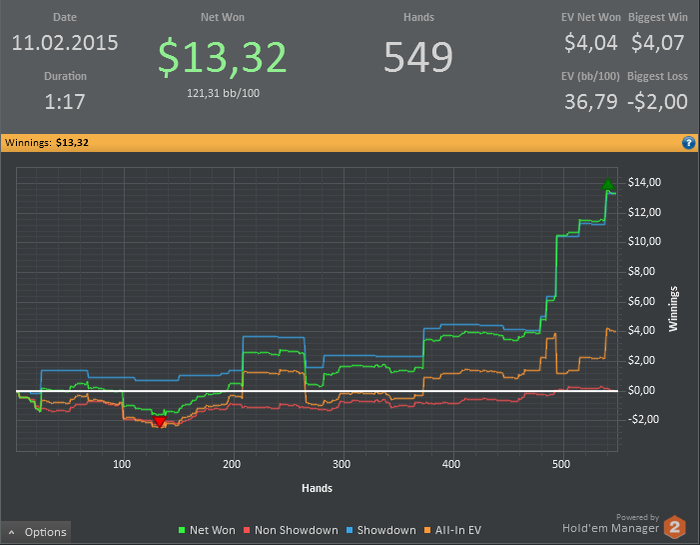 П.С. Сегодня краем глаза увидел Призрачный Ап - мои короли с префлопа увидели тузов и успешно грохнули их. Стэки были огромные, и мой олень в ответ на 4бет был ошибкой (это стало ясно после изучения статов оппа), но я выиграл. Не люблю я переезжать, но мои карманные короли столько раз видели тузов и гибли под ними, что эта победа уже "имеет место быть" :-)