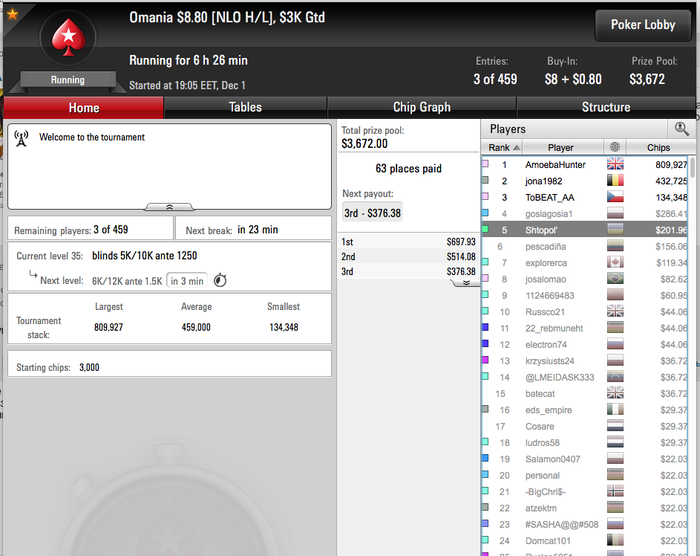 PokerStars - $15+$1.50|40/80 PL Hi - Omaha Hi - 7 players