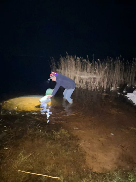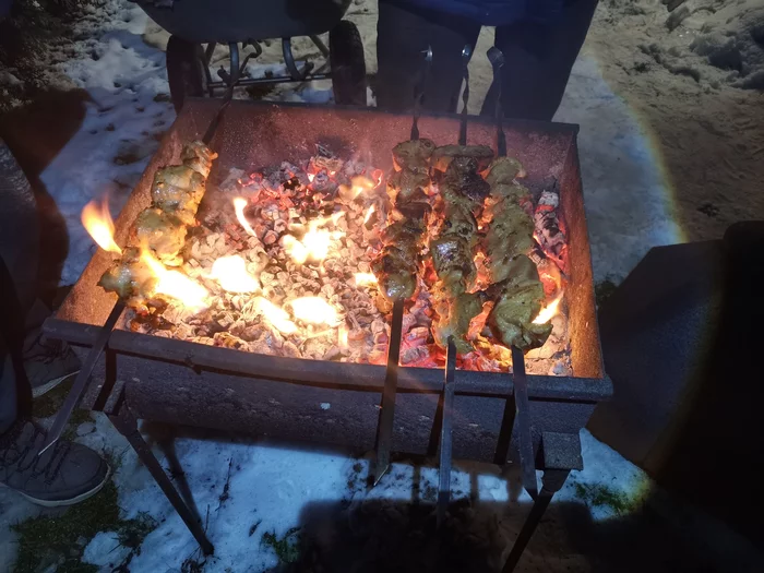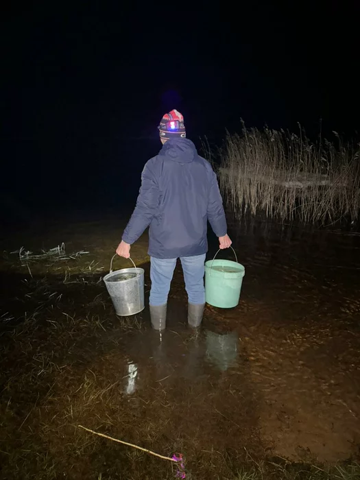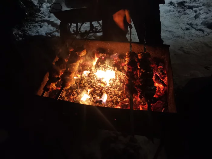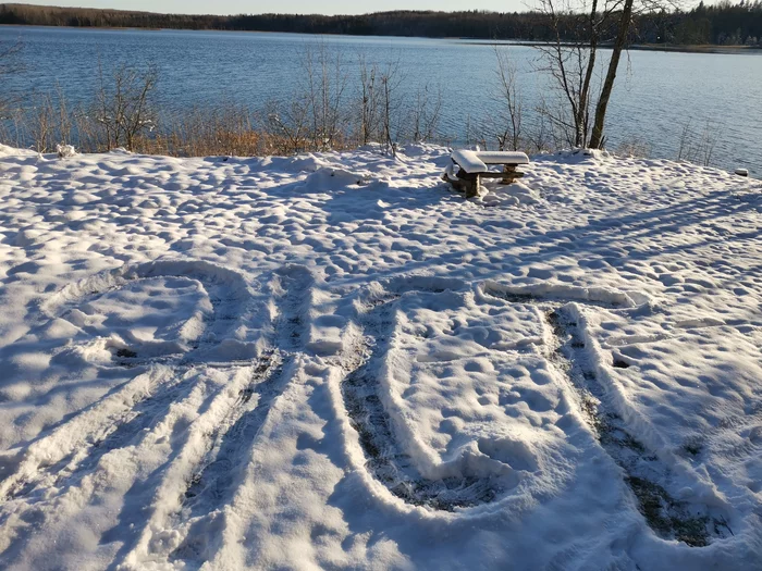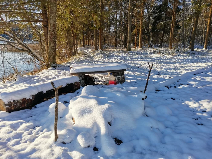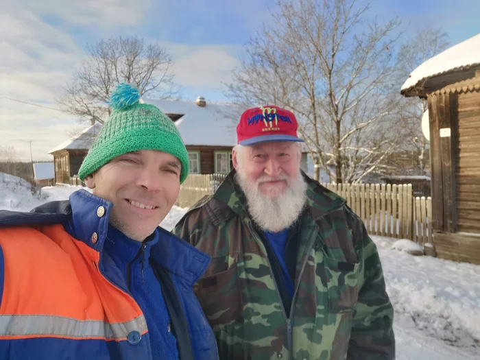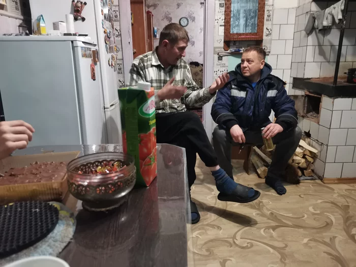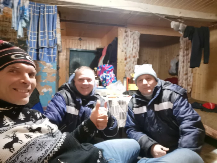 Потом пошли ко мне топить печку и болтать! Сначала на озеро за водичкой питьевой! После 5 часов одевал фонарь и не снимал его-зимой просто необходимая вещь!! Мерси за подгон ещё раз😊