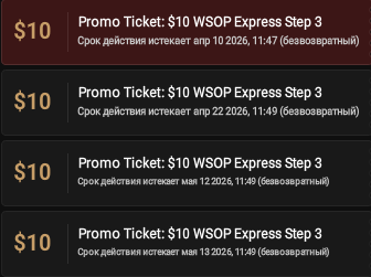 Ребята, на продажу 4 тикета 10$ WSOP Express Step3