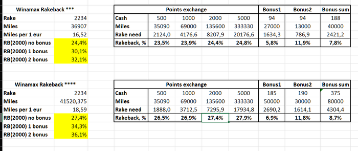 alexraizer, столбцы RB(2000) no bonus, RB(2000) 1 bonus и RB(2000) 2 bonus отражают эффективный процент рейкбэка (возврат рейка) при генерации 2000 евро рейка в месяц.