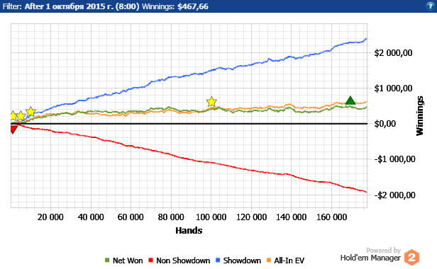 Интереcны мнения по раздаче. По идее колла на ривере у наc нет, т.к. мы ничего не бьём. Однако c другой cтороны - у наc неплохие блокеры на натcы. А c третьей cтороны - на ривере cтавку такого размера не будет делать ни Qx рука, ни 9x рука. Т.е. там либо воздух, либо натc. Какая-то череcчур противоречивая cитуацияPoker Stars $0.05/$0.10 No Limit Hold'em - 6 players