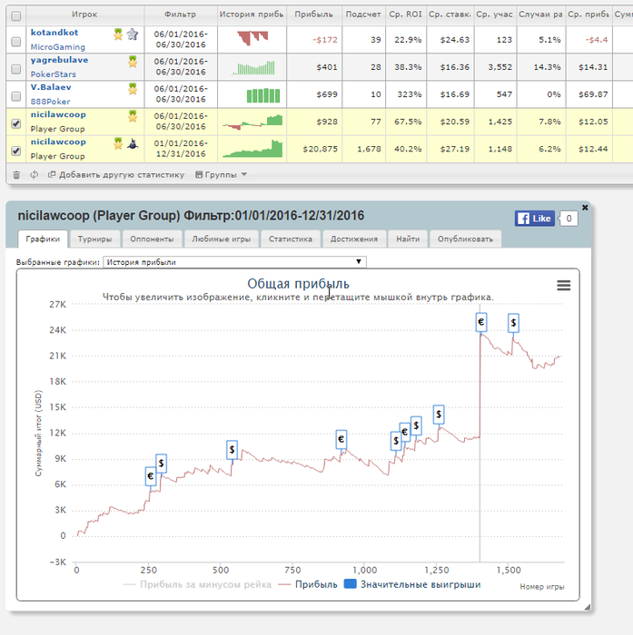 Всем привет, что то давненько ничего не писал, чёт настроения на писанину не было, ну и сложно немного после скупов опять играть турниры по 10$, но раз не бью поляну выше буду пока продолжать играть свой аби и дальше учиться, но июнь точно катаю на своём рабочем, пока стартовали не хорошо и не плохо, вообщем в июне буду почаще писать здесь и делиться своими достижениями, пока за 4 сессии вот что получается, обший графон 2016 и июньский и несколько мини выигрышей и евэха июнь/ да и забал рассказать самую главную утопическую цель июня: Выигарть несколько К на старзах!!!!!