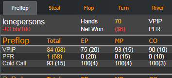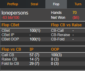 Для кола тебе необходимо иметь примерно 48% эквити. Сможешь ли ты на этой доске столько эквити набрать? И кстати говоря статы опа тут вообще смотреть смысла не имеет.