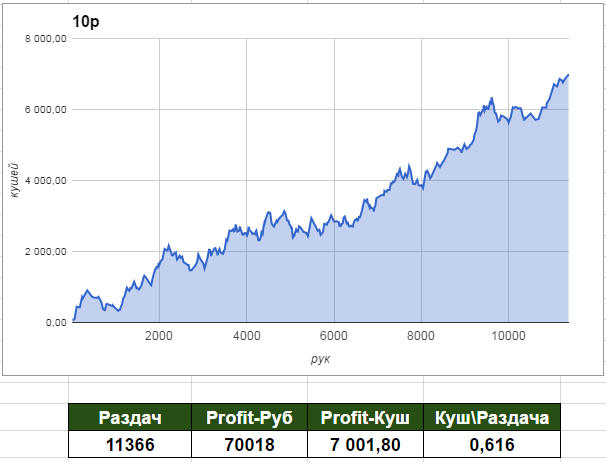Но на лимитах 10-25 довольна много залетных, чтобы показывать от 0,5-1 куш/раздача