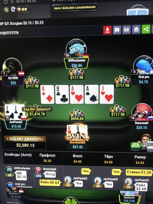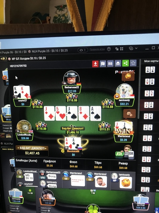 ЧУДО ниже в фото. После него я потерял моральное право стонать на недодачу и невезение Это самый крупный джек, который я видел на Покердоме.