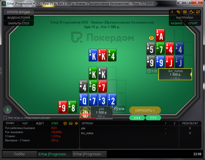 Меня накрыло приятное чувство . Зная что опп в прошлый свой приход сыграл 3 раздачи , выиграл 19 кушэй и ушёл - "бегунок" , так их кличут в нашем сообществе... . Хоть и на полтинник но вкатал , после чего конечно же опп слился ( берите на заметку , ники скрывать перестал ) :
