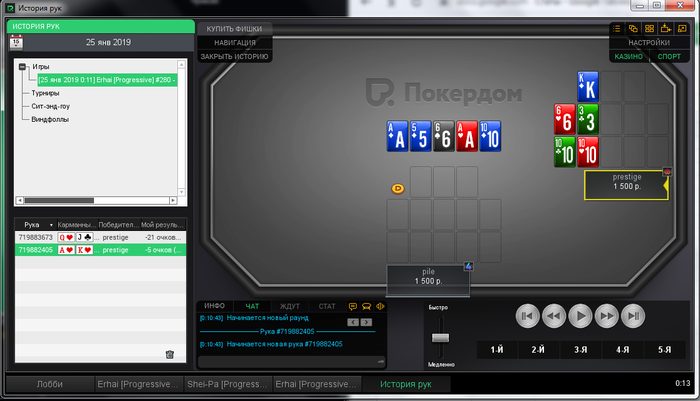 pile @ 25.1.2019 Скажу больше , там и 7 и 9 на стрит пришли , и трипс пятёрок на миде закрылся . Но всё ровно что то не то , как ни крути , не положит никто так стартер в реальном времени