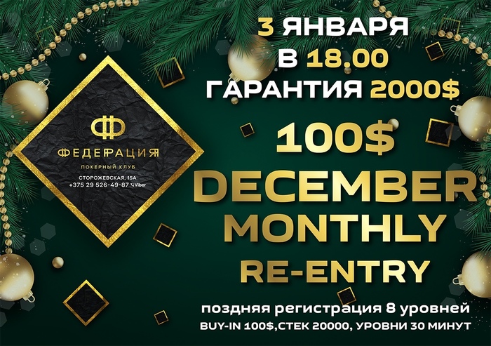 Во время серии BELARUS POKER TOUR (4-14 января) КАЖДУЮ НОЧЬ В 4.00 мы проводим розыгрыш ДЖЕКПОТА, который составляет 5000$.