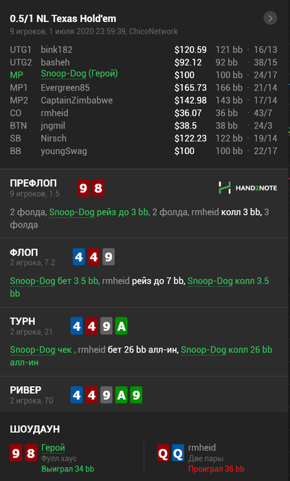 Интересная сессия выдалась. Насасывал по кд: карддед, попадание в топ ренджа и дальше по списку, причем составы были очень даже. Вот один столик, давно такого не видел. Бедный рег начал тильтовать и отдал стека 3, вот че творилось за столом Потом 2 фиша одновременно ушли в ситаут с 600 бб, дичь какая-то. Я пол стека отдал заходя впятером в пот и видя на флопе хуй. Причем заработал в итоге благодаря таким раздачам У гсч определенно есть чувство юмора.