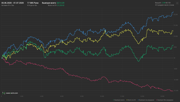 Играл как иблан, бестдей за лето. Надо бы порадоваться, что будет чем платить за хату, но такие качели меня не радуют, мне тупо насдавали, никакой моей заслуги тут нет, наоборот я овердохуя недобрал и отдал там где не надо. Поэтому я лишний раз не сажусь катать, потому что не понимаю каким хером я могу зарабатывать не зная ренджей 3бета и защиты на 4бет. А выучить их не могу, потому что они не точные и меня сожрут сомнения надо ли 3бетить коннекторы без позы или лучше поколить? Перфекционизм ебаный, точнее даунизм. 10% больше чем 0, но это не 100%, так что посижу с нулем. Это одна из причин, почему я не на нлк, а на нл100, хотя всего-то надо спектры выучить, разобрать базу и регулярно раздачи.