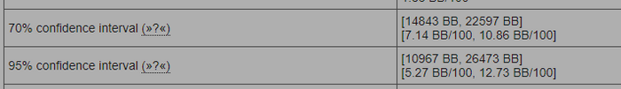 Кстати, если отыграть 200к рук в 9бб, то винрейт с 95% вероятностью находится в коридоре от 5.3бб до 12.7бб, мда даже 200к рук вообще не показатель..