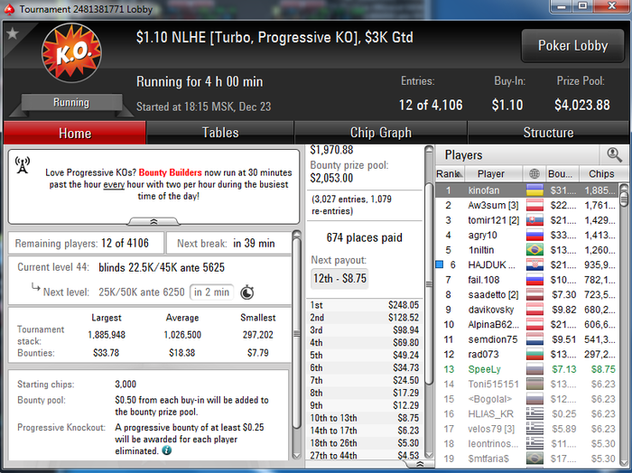 Сделал сегодня еще предновогодний кэшаут 150$ на подарки близким, БР немного просел ну ничего страшного буду наверствовать. Так что парни всем ГЛ и не падайте духом!!!! Все будет гуд