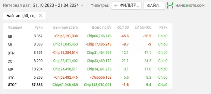 Соответственно там и винрейт рабочий, ну и результаты неплохие достаточно на дистанции, пару месяцев назад смотрел за 2 года результаты, на аби 80 (фильтр типа 50-215) играю порядка 17 баксов с тура, но там по долям оч много отдал. Я на все свои топ доезды продавал слишком много долей и в топ2 моих кешах в 100+ у меня меньше 50% было.
