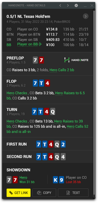 Ибо было сказано: "Любой кризис - катастрофа для одних и новые возможности - для других". И этот коинфлип мне все же удалось затащить, ведь еще в начале года я и представить себе не мог, что совсем скоро буду катать сотку, да еще и не в минус! Причем не только в 2 карты, но и в 3....https://s.pokerbros.net/?t=4g5e14oq002en