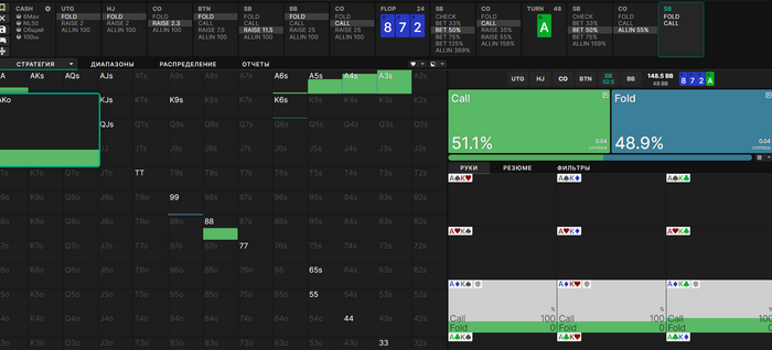 Однако долгие часы в GTO-Wizard и Poker Snowee не прошли даром, и чуть освоившись, и сделав кое-какие подстройки, мне все же удалось начать чувствовать себя в этом "почти серпентарии" примерно так:
