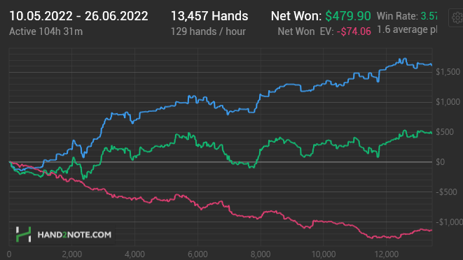 И если кто-то хочет увидеть здесь графики в 200к+ раздач нл200 с винрейтом 15+бб/100 - то говорю сразу: такого здесь точно будет. Уже хотя бы потому, что я не из тех, кто катает без RIT и страховки, а потом ноет на каждом шагу о том, как же ему хуево от недодачи в 30+ БИ.