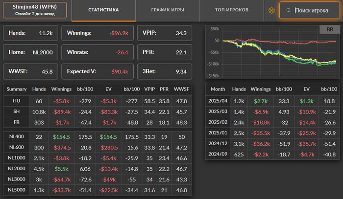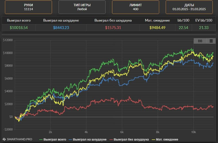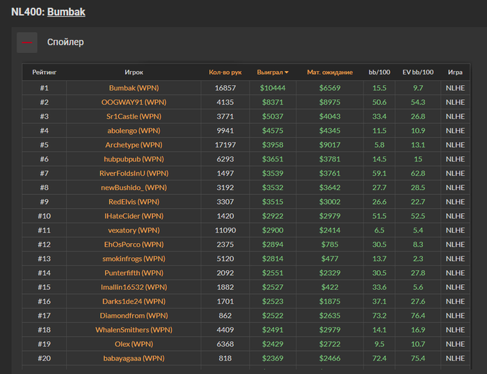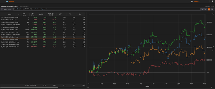 Bumbak, Знайомий взяв свою дистанцію за рік на одному ліміті в Х2Н у нього було 63к рук з вінрейтом 12бб, Статнейм втратив 15% рук і показав 55к рук з вінрейтом 9.4бб, смартхенд взагалі втратив 25% рук і показав 48к рук з вінрейтом 0.55, як з втратою 15к рук вінрейт перетворився з +12 на 0.55 незрозуміло.