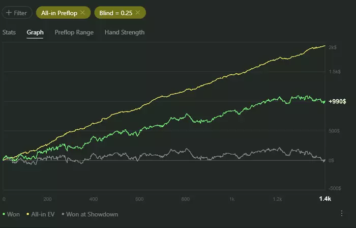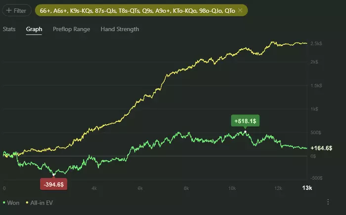 Общий доход (с бонусами, рэйкбеком и флипами) — ~$250. Мало, но ок. Пока остаюсь на текущем лимите, хотя банкролл позволяет прыгнуть на 5й и даже на 10-й. Даю себе 10к раздач на тест новых фишек, потом, возможно, поднимусь. И да, предупреждаю: кручу 1 раз — временно, без обид, тестирую.
