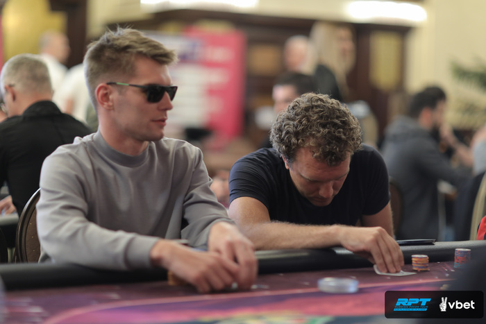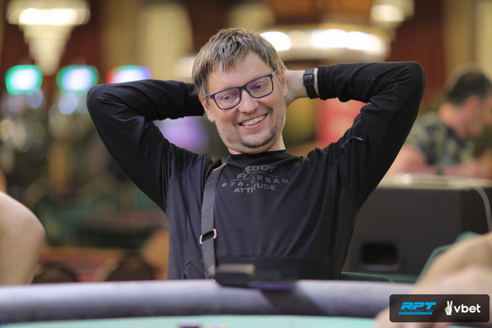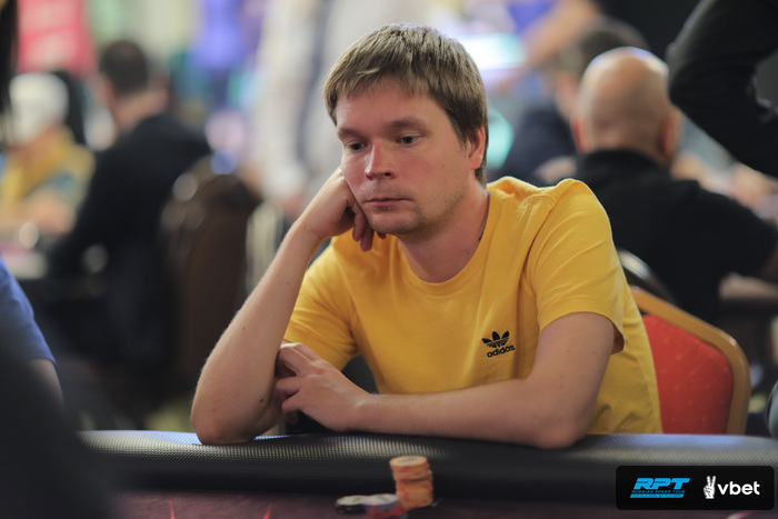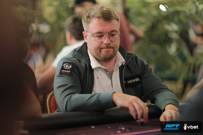 Владислав Кириленок оказался в префлоп выставлении по 75.000 против Дениса Минича.