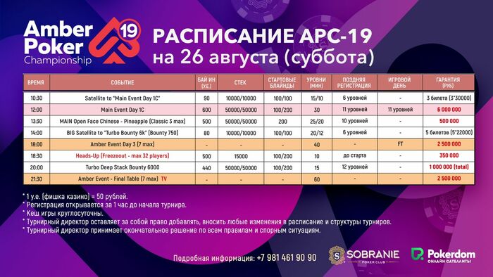 8) 21:30 Amber Event Final -финальный стол с ТВ трансляцией.
