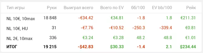 Согласен, парни, перестраховываюсь ... Хотя это уже симптомы "зоны комфорта". Просто как только я собираюсь полностью перебраться на лимит выше- так сразу меня стрик какой-то поджидает. Причём самое интересное, что как раз с 20-кой то всё норм, там я в хорошем плюсе пусть и на маленькой дистанции. В эту пятницу буду играть только 20-ку , 10-ку подключу только если совсем уж игры не будет хватать.