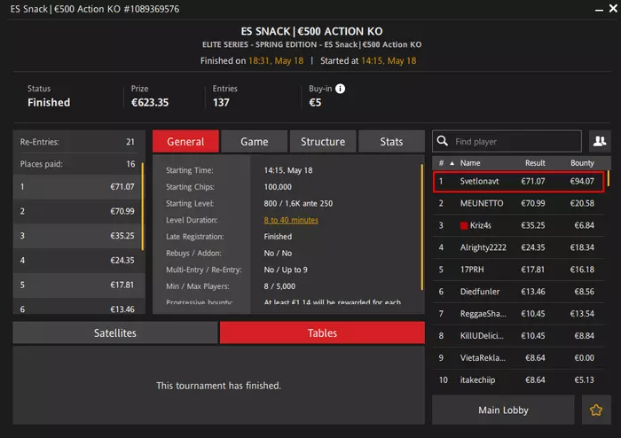 Это ж не совсем от меня зависит, я сейчас могу играть турниры до 6$. Дадут повышение - полечу как ракета 🤘