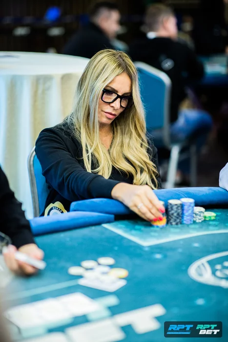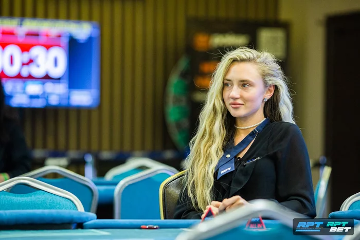 Открытие Елены Ясючени с первой уравнял Олег Микулич. Александр Береснев с СО поставил олл-ин 14,5к. С большого блайнда Андрей Голубев порейзил — 30к. Елена — олл-ин 70к, Микулич — олл-ин 108к. Андрей Голубев решил не залетать четвертым в это выставление и выбросил карты в пас.
