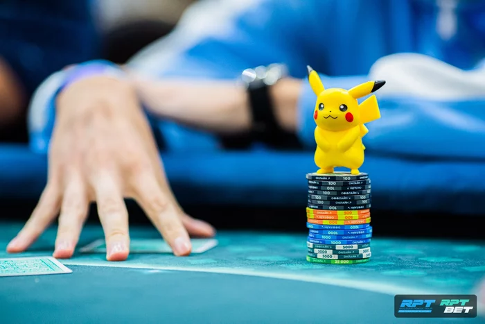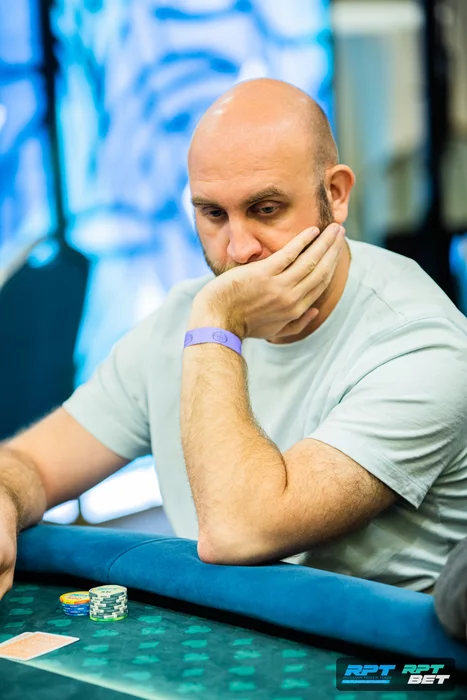 За соседним столом Артем Дубовик около минуты думал префлоп на олл-ин от Сертака Туркера. Сертак поставил 51к с малого блайнда против открытия с кнопки. В итоге Артём сделал колл с , поехал против .