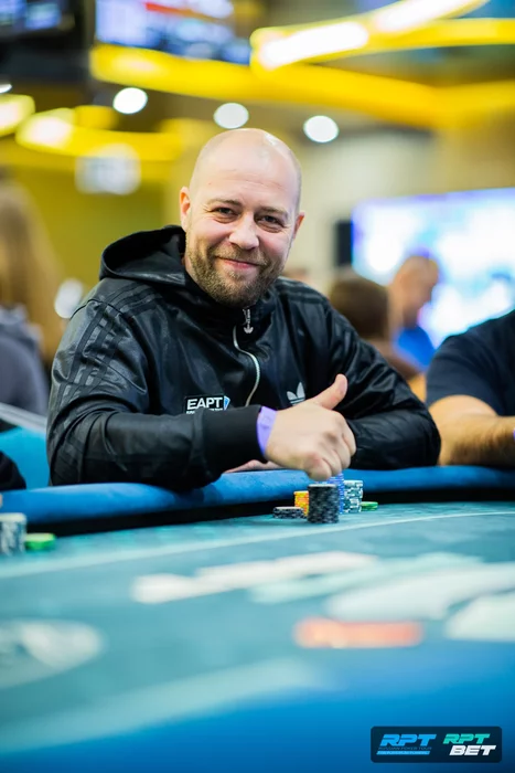 Андрей Ласкович завел префлоп пару , на флопе выставился против Тимофея Димешко.