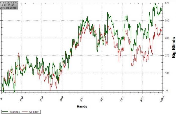 С тренером позанимался, думал, хоть сейчас сразу стабильно в плюс начну играть, так нет же. Так же в ноль долблю, радует только, что в ноль уже не NL2 или NL5, а NL20,30. Вот в принципе и все чего за год достиг.