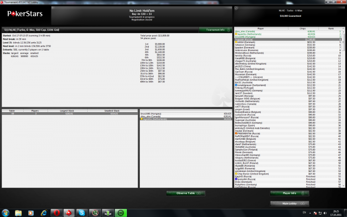 BB luukvamos (2,868) Blinds: 75/150 Ante 30