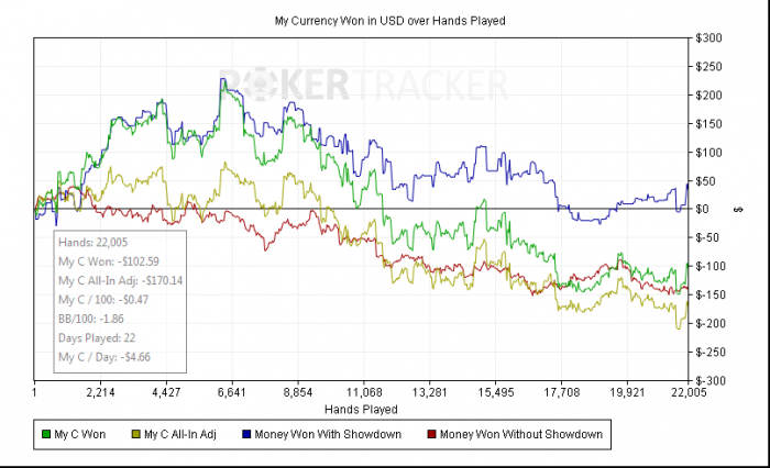 Разобрал все раздачи, которые хотел. Вышло 218 раздач на 5к рук. Из них раздач 40 я сыграл оптимально на мой взгляд. Остальные это просто Как я могу бить нл25 с такой ужасной игрой ума не приложу, скорее всего средний рег играет еще хуже