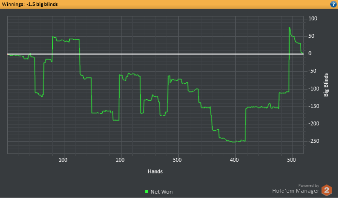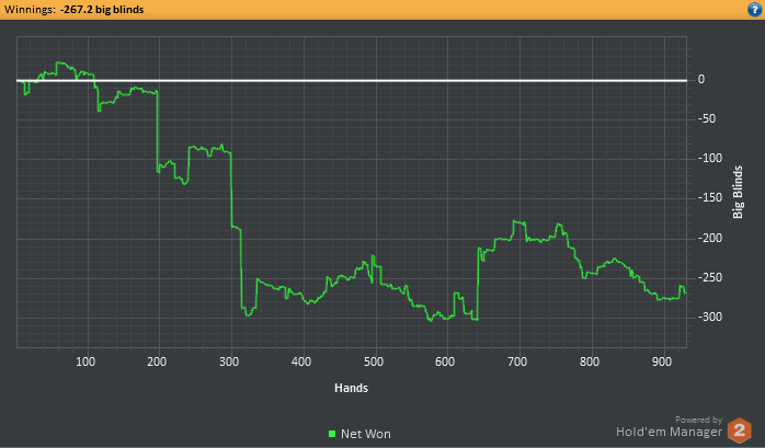Hero goes all-in 53.9BB Final Pot: $263.6BBSB shows a flush, Jack high