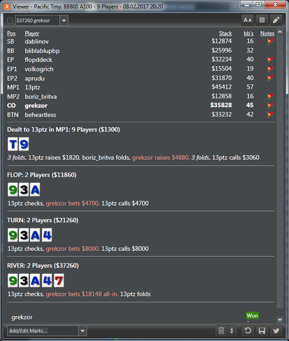 Сегодня есть определенный результат, но в целом сессией остался недоволен, играл точно не в А, максимум в B игру, понимаю что очень серьезно нужно работать над собой в плане психологии, чем я и займусь в ближайшее время...