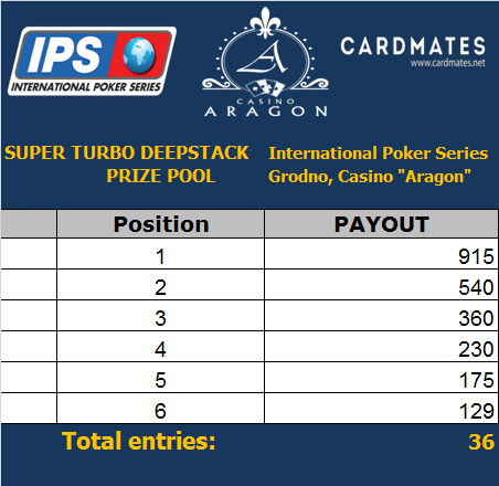 Не стоит забывать, что наша серия International Poker Series предлагает турниры и поменьше :) Например, сейчас народ уже собирается на Super Turbo Deepstack $2000 GTD.