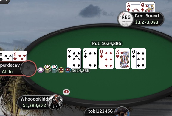 WhooooKidd (BTN): t1287882 M = 38.73Hero (SB): t299013 M = 8.99ForzaVaxholm (BB): t207201 M = 6.23Pre Flop: (t33250) Hero is SB with K
