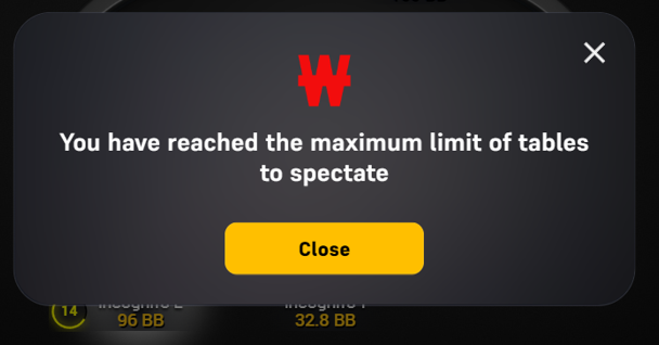 OuthitPlayer, Есть лимит на обзерв столов за которыми ты не сидишь. 4 стола.