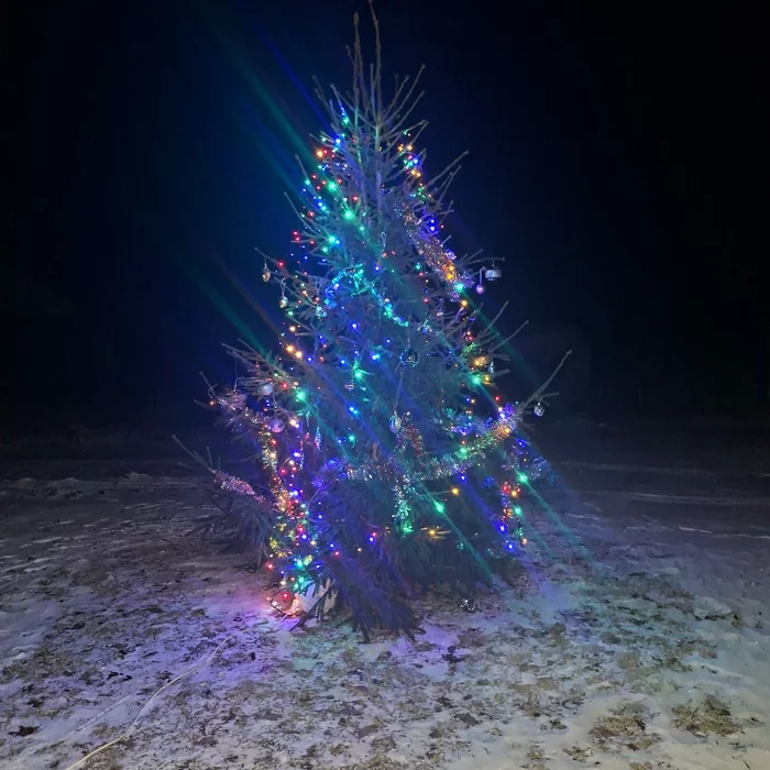 В деревне украсили елочку😍