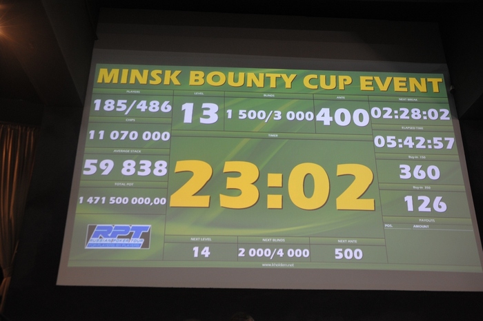 Сегодня был безумный день (по количеству людей в зале и регистрациям на турнирах), в частности в Main Event в итоге "набили" 564 входа!!! Day 3 начнется в 12:00, просьба к игрокам - не опаздывать и иметь при себе любое удостоверение личности с фотографией!