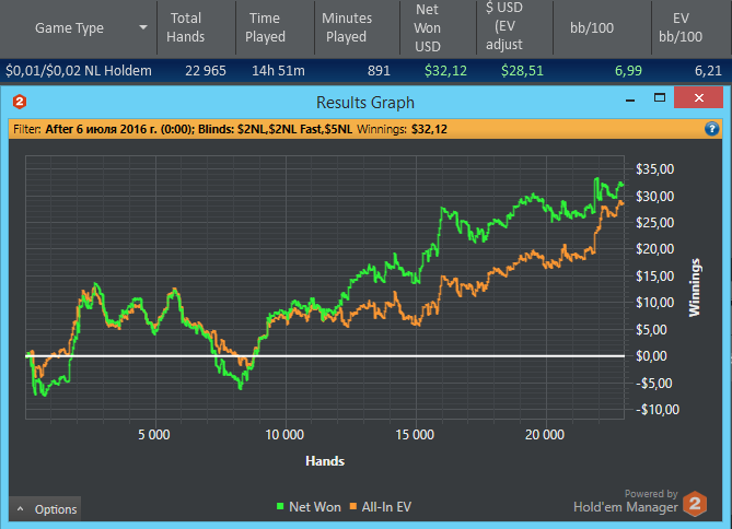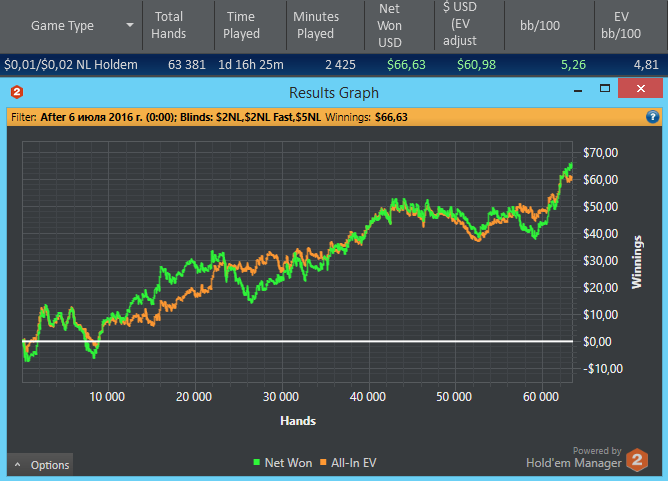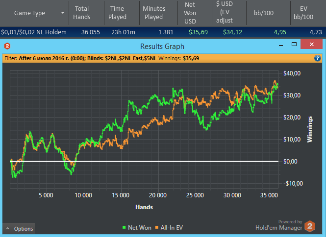 В целом марафоном доволен. Не смотря на то, что наебенивался два дня за эту неделю в сопли, отыграл 63к рук!!! При этом не задрачивая, делая сессии по 2 часа и выходя регулярно с друганами пить пивулю, чтоб не засинили) пока продолжу играть в таком же режиме, как набью бр 250$ буду мутить что-нить с нл5) всем фарта!)