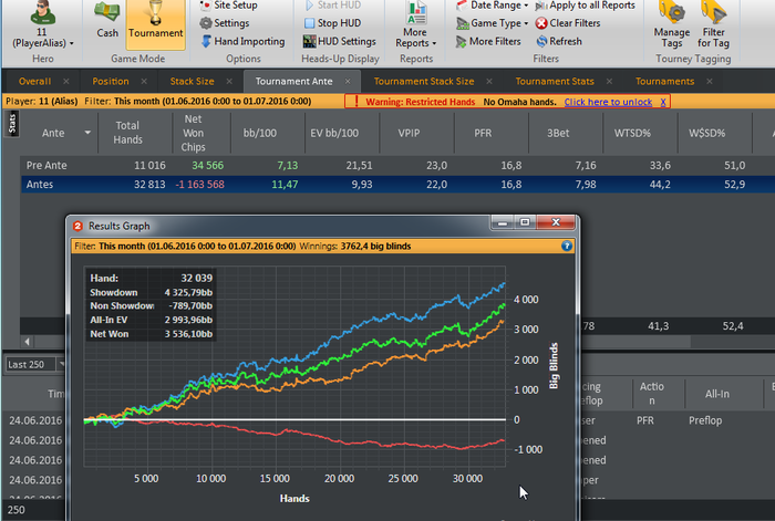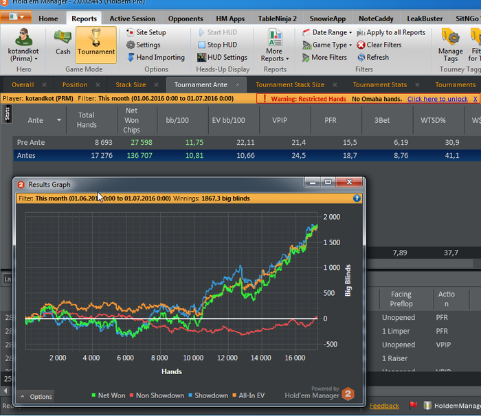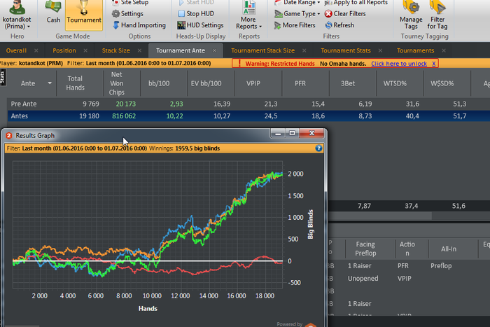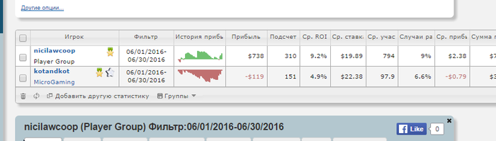 nicilawcoop @ 1.7.2016 Итоги июня. Как и писал уже раньше больше половины месяца страдал ерундой, косячил по 5 раз в раздаче, адекватно начал играть только в конце месяца поэтому такой хреновый результат. в июле могу замазать хоть с кем что будет профит минимум в два раза выше чем в июне
