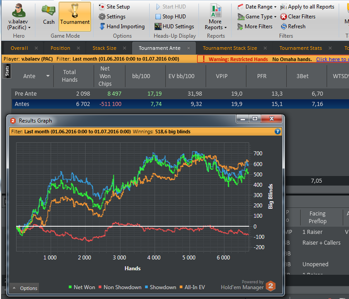 Итоги июня. Как и писал уже раньше больше половины месяца страдал ерундой, косячил по 5 раз в раздаче, адекватно начал играть только в конце месяца поэтому такой хреновый результат. в июле могу замазать хоть с кем что будет профит минимум в два раза выше чем в июне
